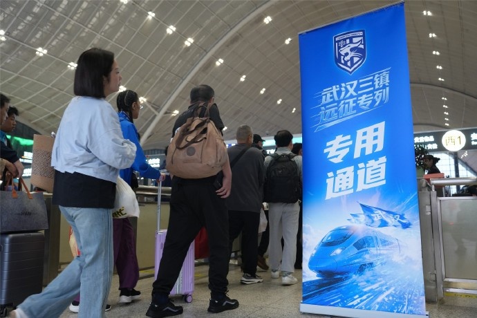 人声鼎沸,旗帜飞扬。伴着激昂的助威歌声,武汉三镇“球迷远征专列”缓缓驶出站台——数百名“第12人”身穿蓝衣,踏上奔赴重庆客场的征途。感谢中国国家铁路集团有限公司、中足联及中国铁路武汉局/成都局、武汉车站的大力支持,让本次活动顺利成行。