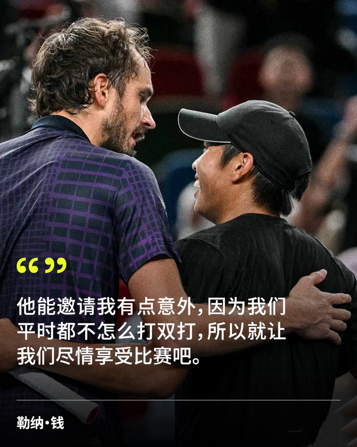 “但当丹尼尔问的时候,我们更像是——显然我们都是单打选手,而且我们并不特别重视双打,所以我们觉得这不会真正影响单打。我觉得会很有趣,所以答应了。”勒纳·钱说道。